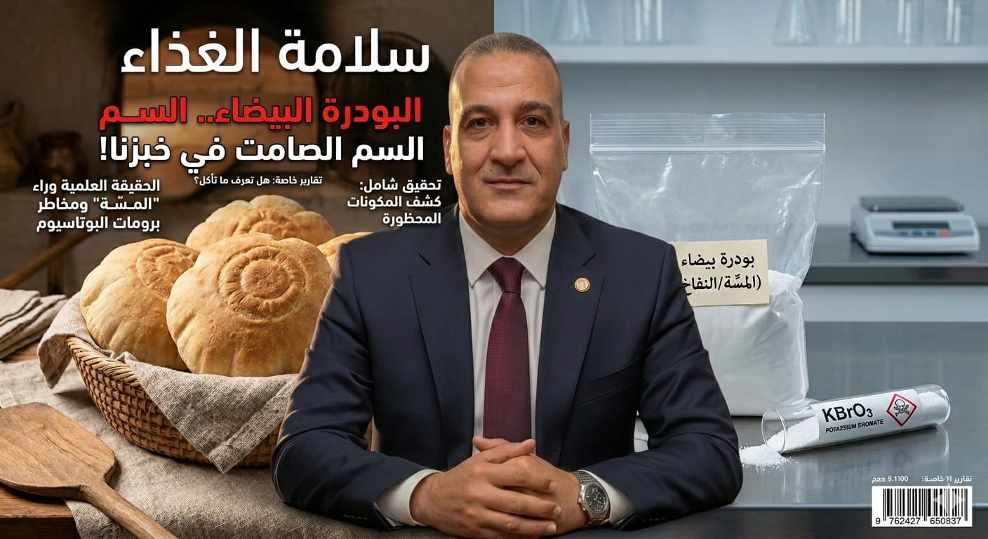 البيع العشوائي لهذه المادة كـ “بودرة سايبة”—بدون عبوة توضح المكونات، أو الشركة المصنعة، أو الجرعات الآمنة—يُعد كارثة رقابية. المستهلك يضع مادة كيميائية حارقة ومسرطنة في طعام أطفاله اليومي ظناً منه أنها مجرد “محسّن أو خميرة”.
